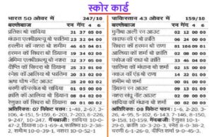 भारतीय महिलाओं ने पाकिस्तान के खिलाफ वनडे में अजेय अभियान भी जारी रखा और लगातार 12वीं शिकस्त दी। पाक ने टॉस जीता और गेंदबाजी करने का फैसला किया। भारतीय टीम 50 ओवर में 247 रन पर ऑलआउट हो गई। जवाब में पाक टीम 43ओवर में सिर्फ 151 रन बनाकर ढेर हो गई। भारतीय टीम की ये लगातार दूसरी जीत है। इससे पहले, उसने श्रीलंका को हराया था।
